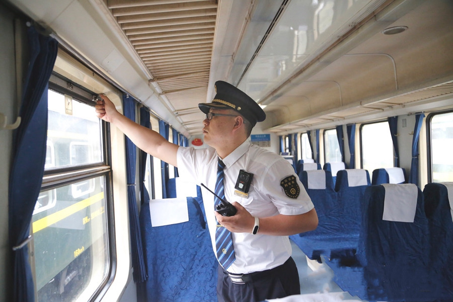 “看车是列车在库内停放期间,保证车上的设备安全,防止出现设备设施、备品用具丢失、损坏。”正在库内看车的K8481次列车长孙扬威向记者介绍,进入暑期,他们加大了对车厢的巡视力度,防止出现消防安全隐患。”