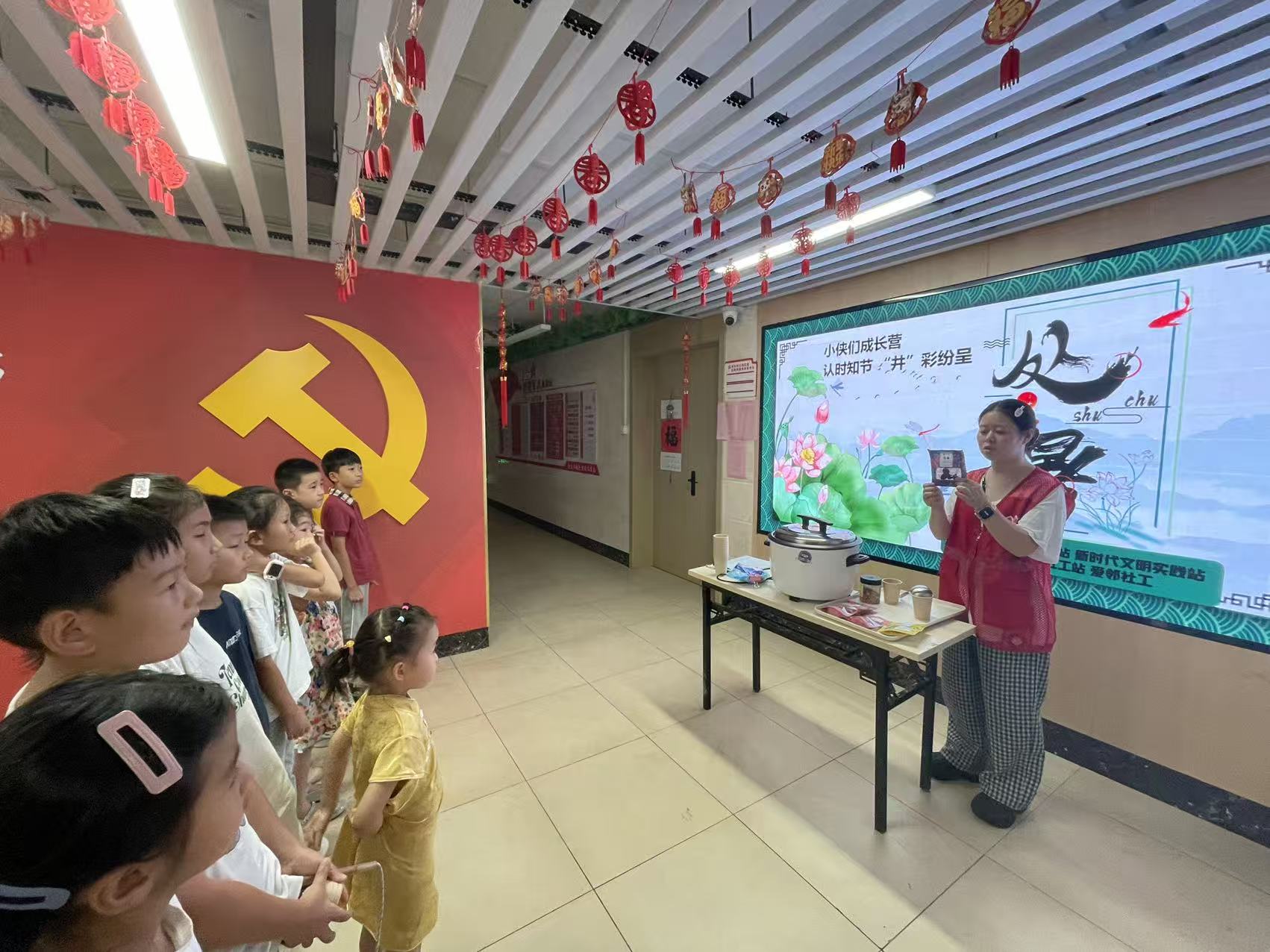 绘画课刚结束,孩子们便围在一起跟着工作人员学习处暑节气知识,之后在工作人员的带领下制作酸梅汤。绘画知识学习、节气习俗学习让这堂生动的实践课给孩子带来了无限快乐。