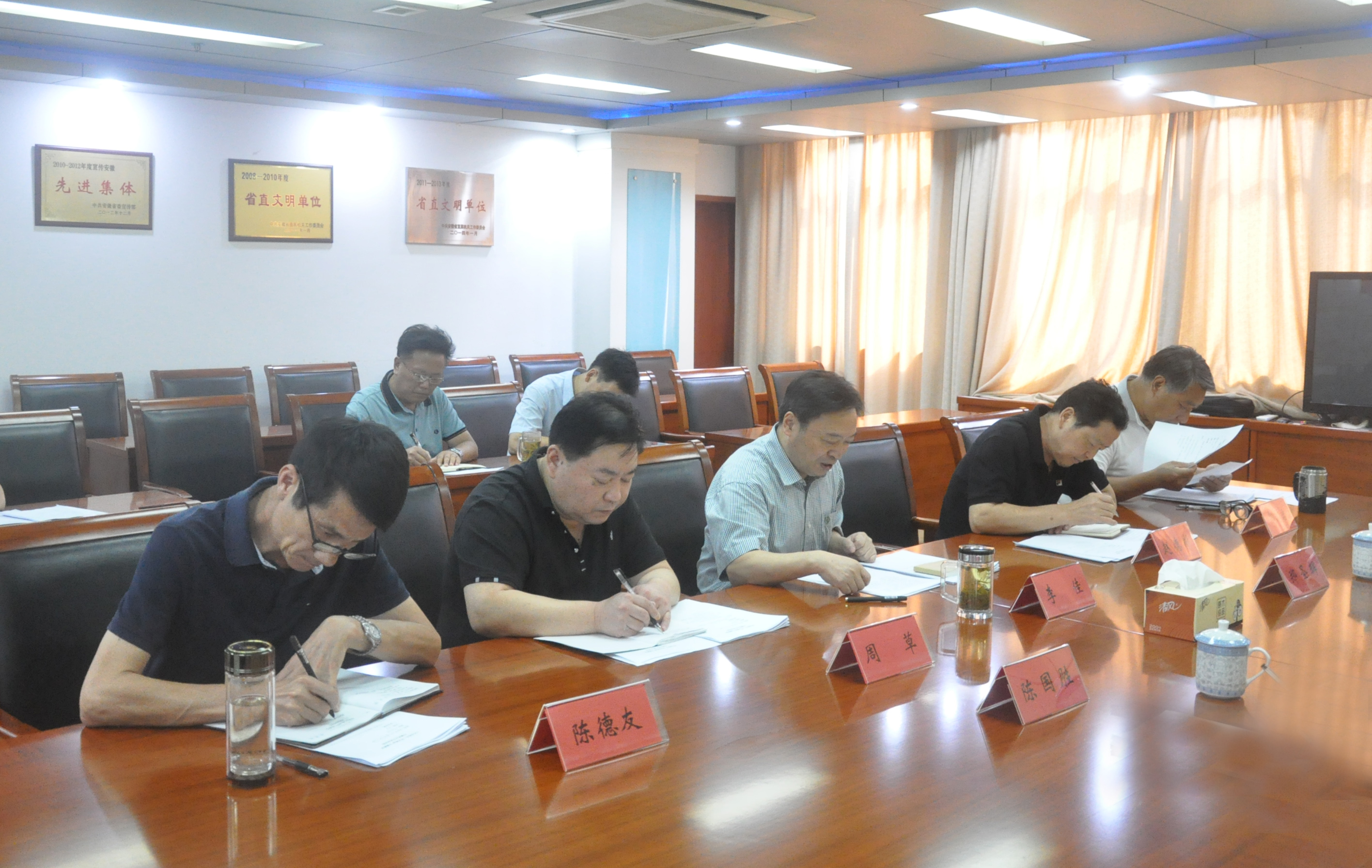 8月30日下午,江淮杂志社党委召开“不忘初心、牢记使命”专题民主生活会,省委宣传部机关党委专职副书记郑圣辉同志、省纪委监委驻省委宣传部纪检监察组副组长陈国胜同志到会指导。