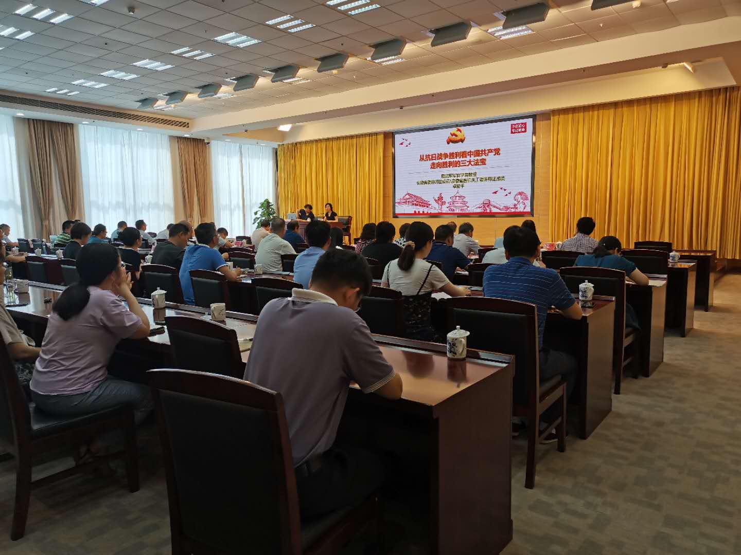 宣讲报告会上,原陆军军官学院教授,省委讲师团、省直机关工委讲师团成员卓爱平作题为“从抗日战争胜利看中国共产党胜利的三大法宝”的报告。卓爱平从“中国共产党怎样抓住时局转换的契机促成抗日民族统一战线的建立与巩固”、“中国共产党怎样应对中日敌强我弱态势实现军事战略指导转变”、“中国共产党怎样直面自身问题打造和锤炼自己”三方面讲述,深入浅出地阐释了中国共产党走过的波澜壮阔的革命历程。
