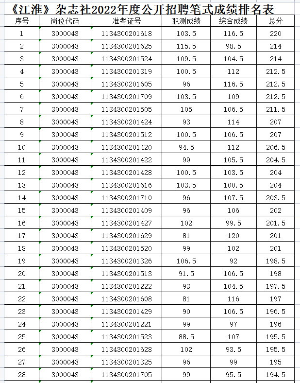 附:《江淮》杂志社2022年度公开招聘笔试成绩排名表.xls