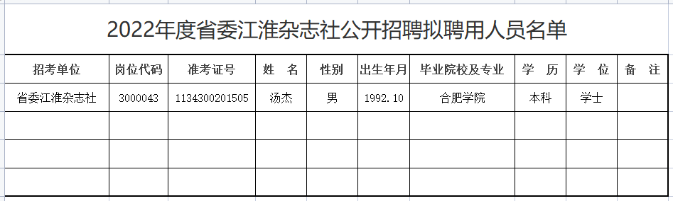 附:2022年度省委江淮杂志社公开招聘拟聘用人员名单