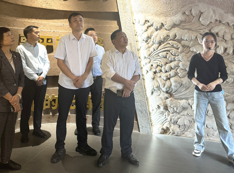 调研组首先来到和平村水果种植展销中心,详细了解和平村水果种植产业发展情况,并与村两委对和平村建设“江淮果岭”下一步规划进行了详细探讨。接着,调研组来到平岗切岭纪念馆,参观学习淠史杭工程中的“切岭工程”奇迹。随后,调研组在和平村村部与叶集区、平岗街道和和平村相关负责同志举行工作座谈。叶集区政府副区长张艺博介绍了叶集区巩固拓展脱贫攻坚成果同乡村振兴有效衔接工作情况,省医保局、《江淮》杂志社、省政府参事室、省信访局和省数据资源局先后就本单位定点帮扶工作情况进行了交流。