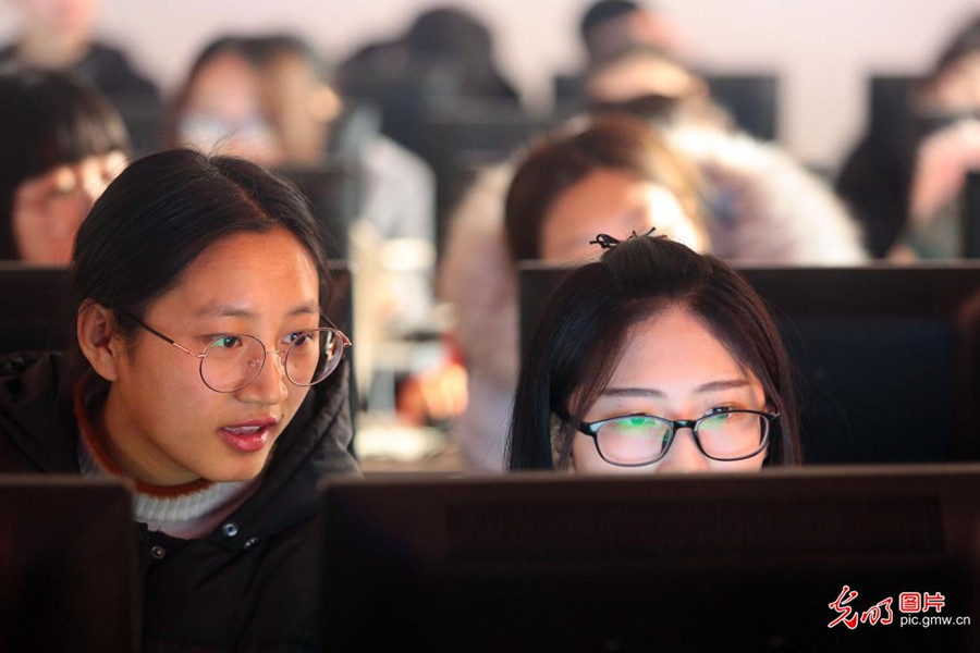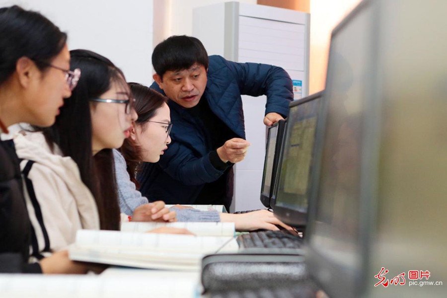 为了加速京津冀协同发展中技能人才培养速度,天津中德应用技术大学与承德应用技术职业学院2018级学生共同开展"1+2"分段培养新模式。即第一年在天津中德学习,后两年回承德学习。6个专业的237名学生已经在天津进行了一个学期的学习生活。图为2019年2月25日,学生迎来了他们新学期的第一堂实训课。(刘东岳摄/光明图片)