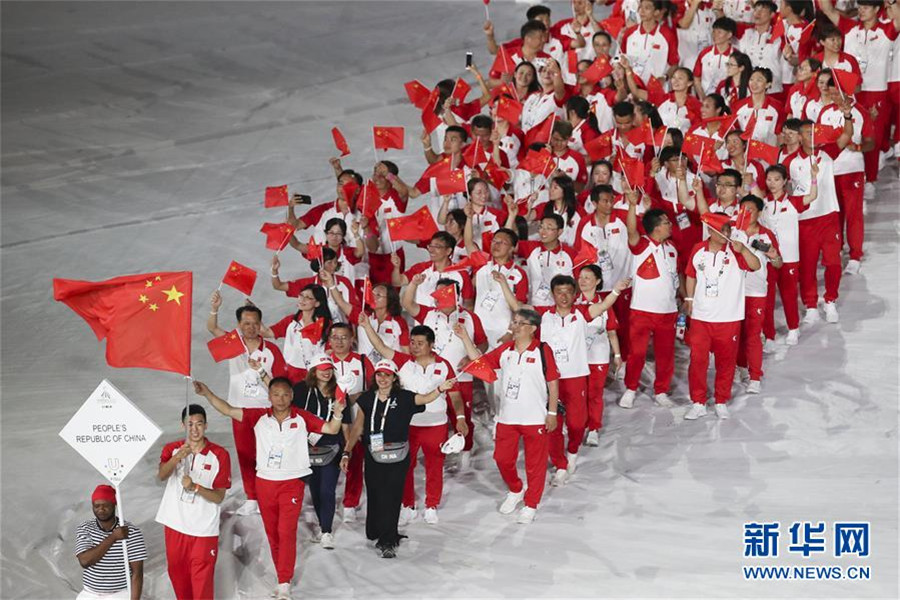 7月3日,中国大学生体育代表团在开幕式上入场。新华社记者郑焕松摄