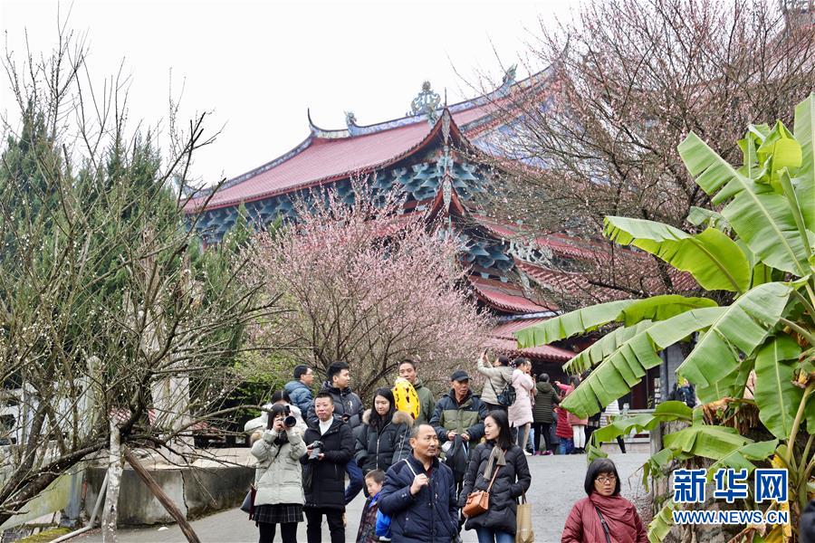 2月10日,游客在福州林阳寺内赏梅拍照。 新春佳节期间,位于福州北峰山区的千年古刹林阳寺内梅花相继绽放,吸引众多市民前往观赏。林阳寺是福州五大禅寺之一,建寺至今已有千年历史。 新华社记者 姜克红 摄