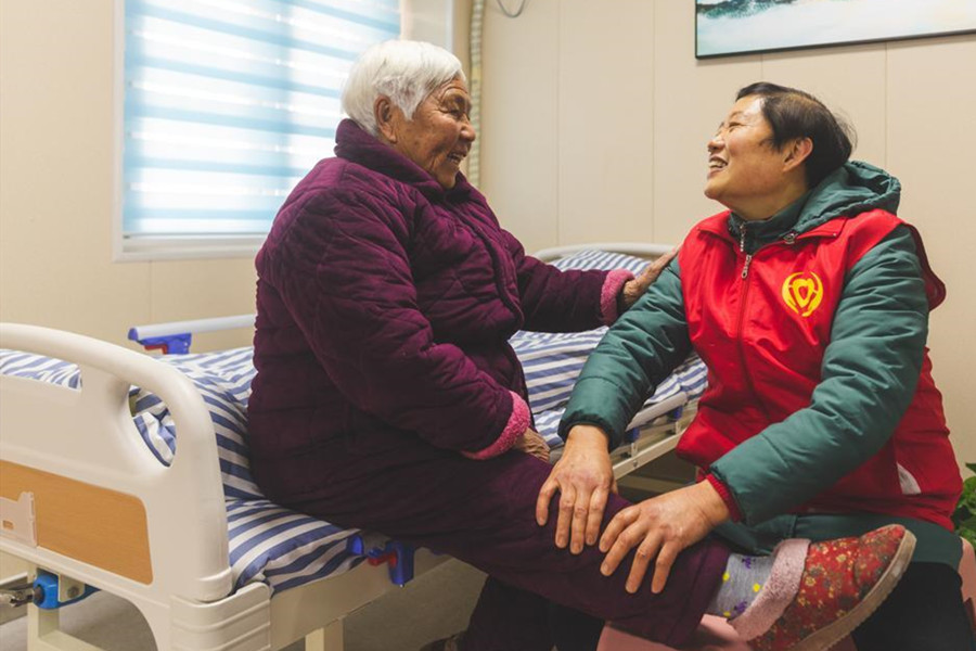 1月6日,在滁州市琅琊区西涧社区养老服务站,志愿者为老人按摩护理。 建设完善8个街道养老服务中心、37个社区养老服务站是2020年琅琊区十件为民办实事中的一件。目前,该区已实现8个街道37个社区全覆盖,基本建成了“居家社区机构相协调、医疗康养相结合”的养老服务体系,为老年人提供精准化、个性化、专业化的服务,在提升该区养老服务质量的同时,有效满足了老年人持续增长的养老服务需要。