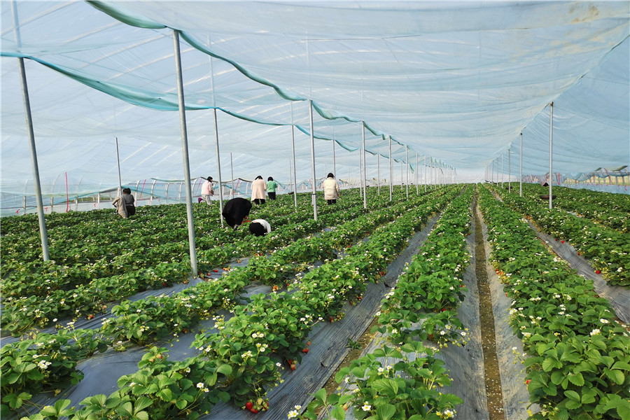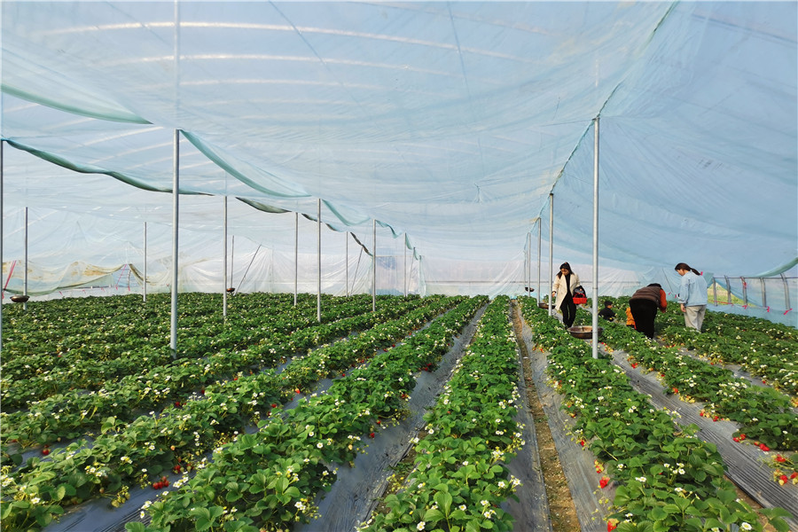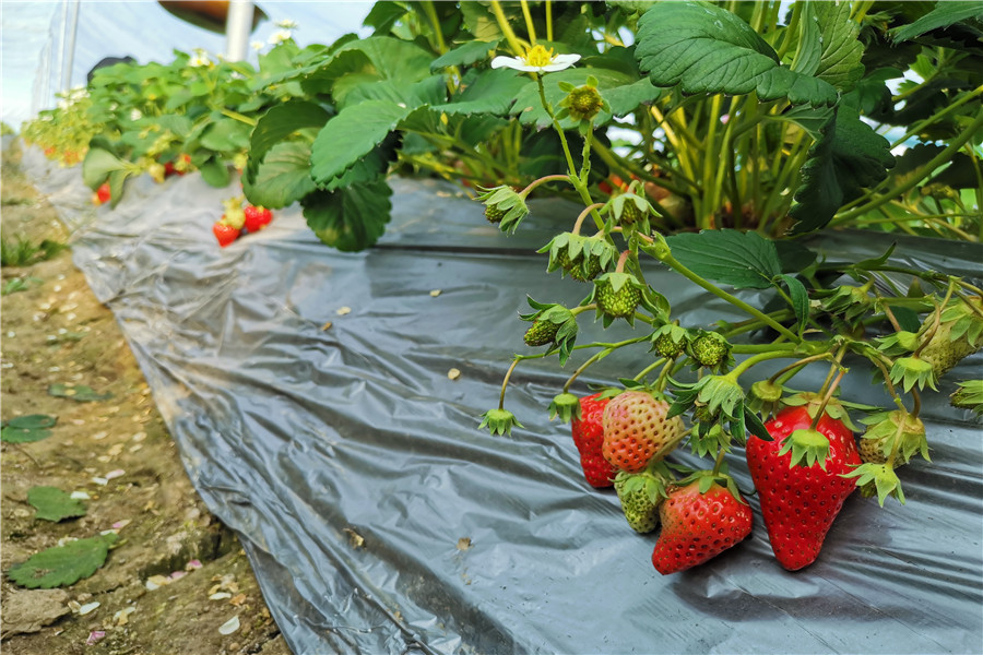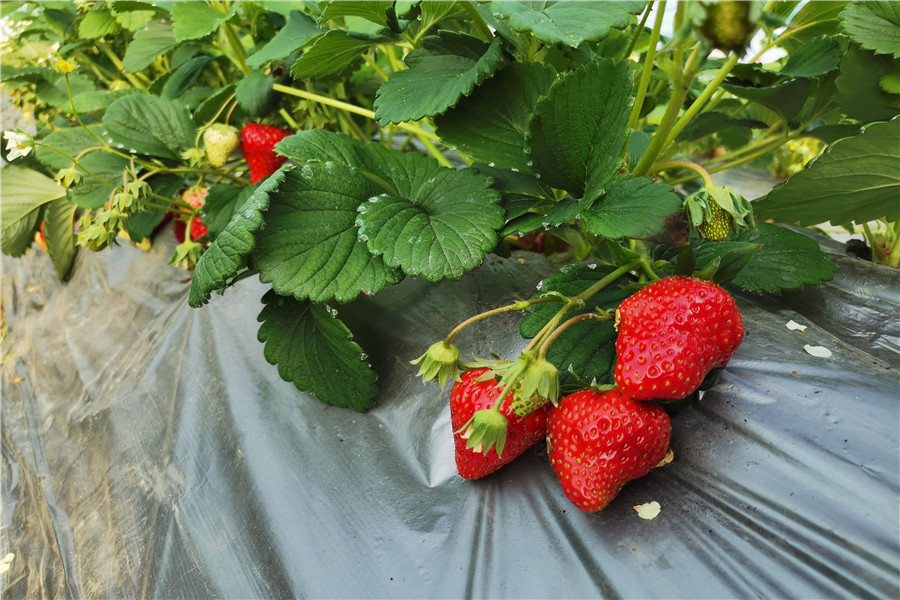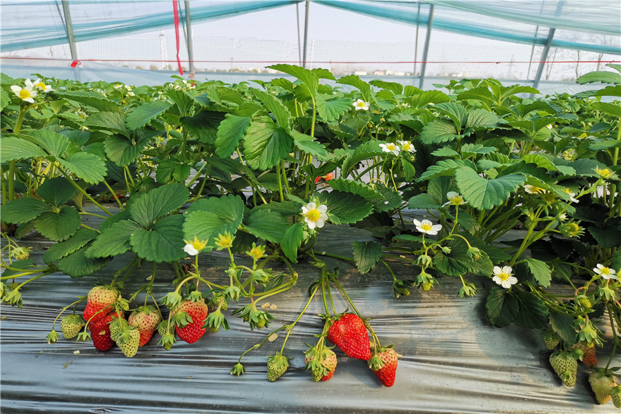 这座家庭农场位于阜阳市临泉县滑集镇南杨小庄村,于2020年7月成立。春节期间,天气晴暖,吸引了众多游客前往采摘。“最近来采摘草莓的人特别多,每天不断有人来来往往,基本都是附近村子的。”其负责人陈贵侠介绍,“奶油草莓为40元/斤,普通草莓为30元/斤。”