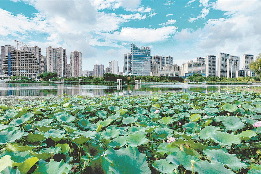 8月21日拍摄的亳州市市政公园生态美景。近年来,亳州市积极践行“绿水青山就是金山银山”的生态理念,全面推进河湖长制,持续打好碧水保卫战,打造市民满意的宜居城市。