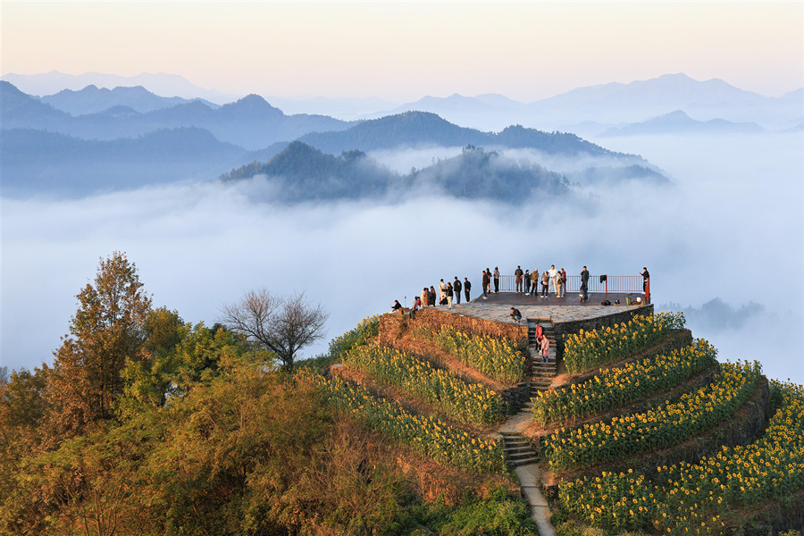 11月1日,黄山市歙县霞坑镇石潭村,山峦与云海相呼应,美不胜收。