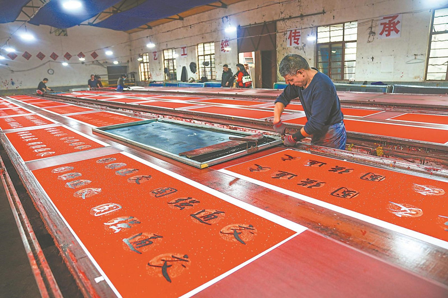 近日,泾县丁家桥镇宣纸书画纸生产加工企业赶制春联。临近春节,当地宣纸书画纸生产加工企业迎来春联产销旺季。记者 李博 王兰兰 实习生 钱威 摄