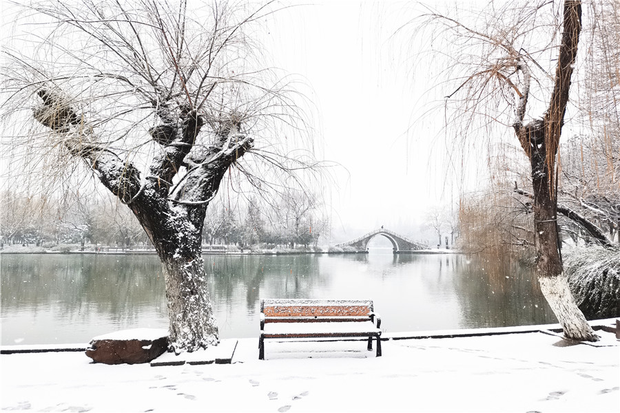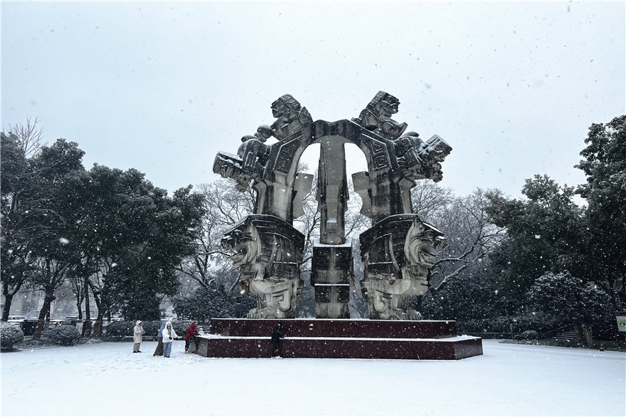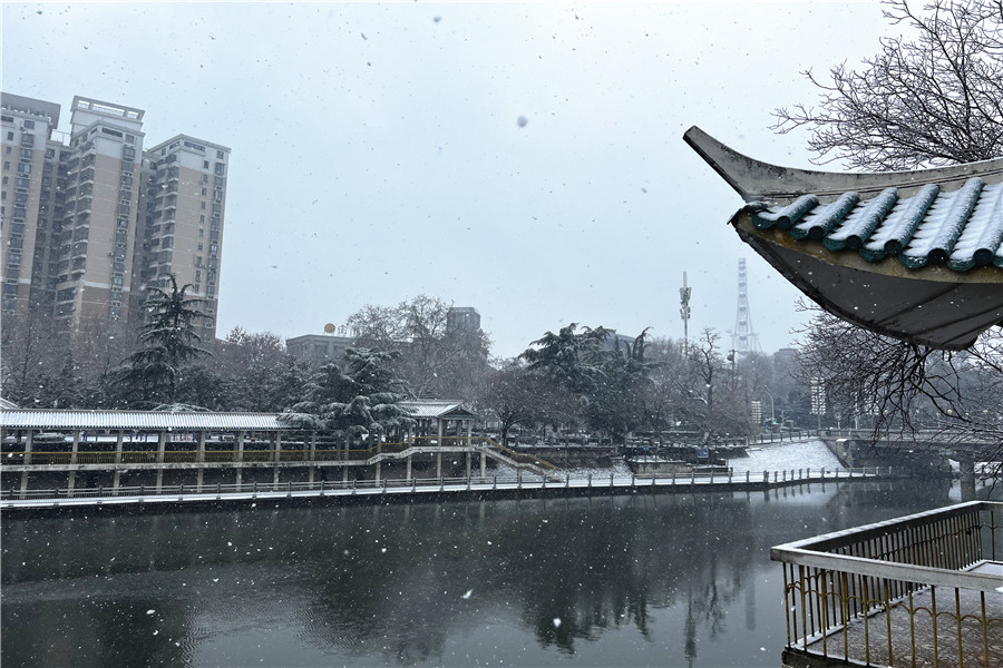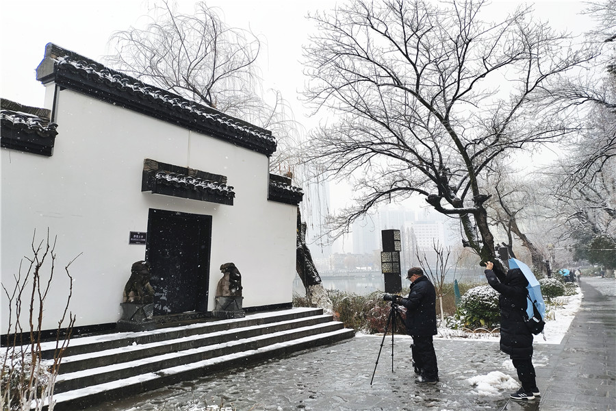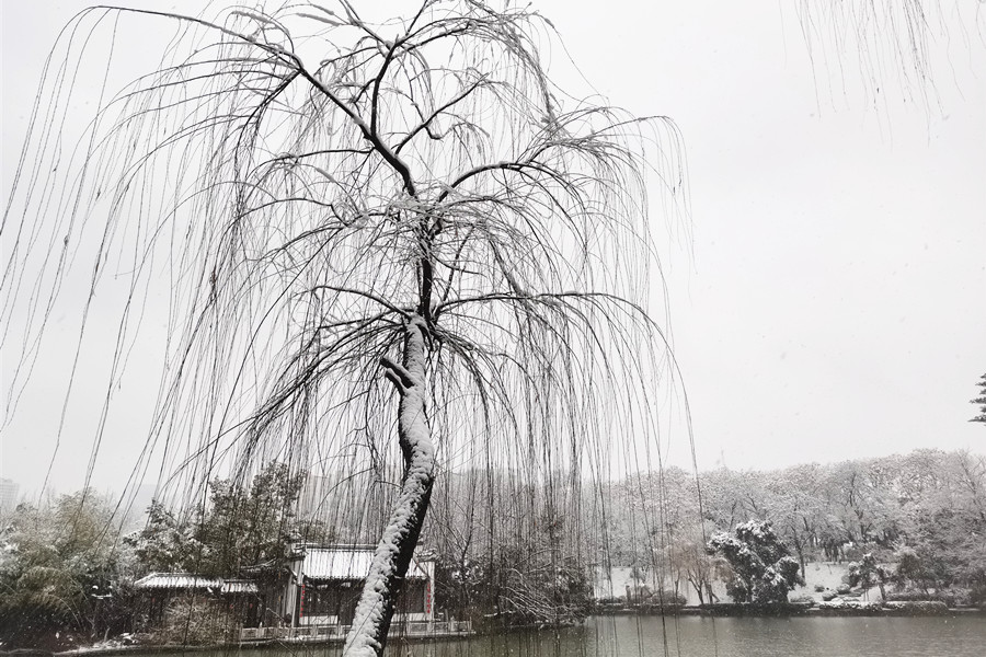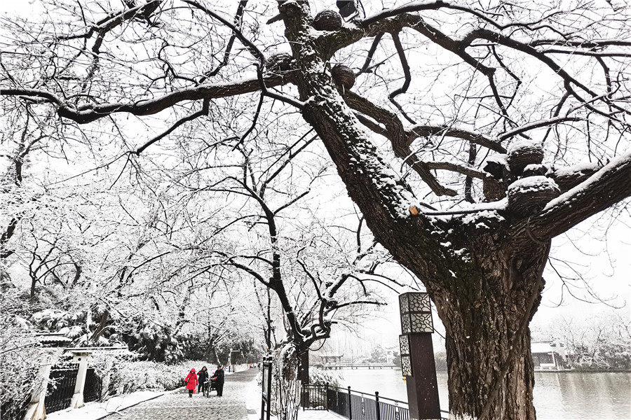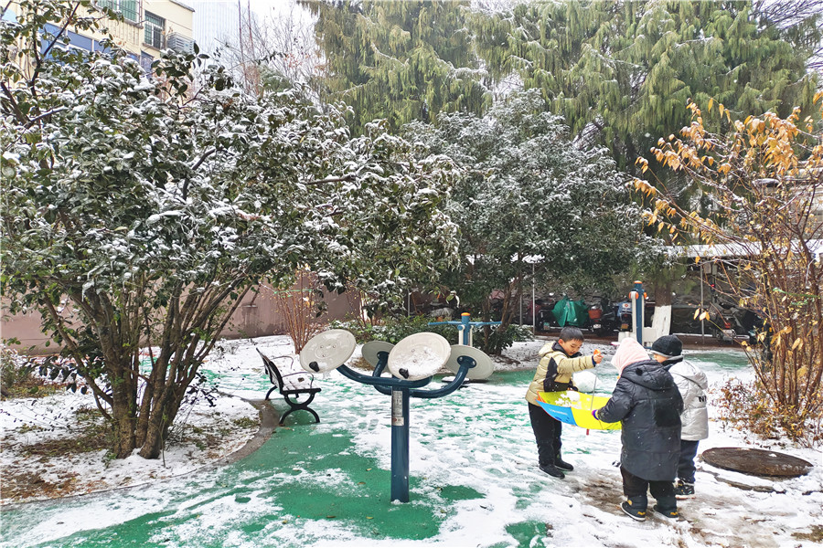 本网讯 2月4日,正值立春节气,合肥飘起了纷纷扬扬的雪花,处处银装素裹。一些市民冒着严寒走出家门,近距离欣赏美丽的雪景。