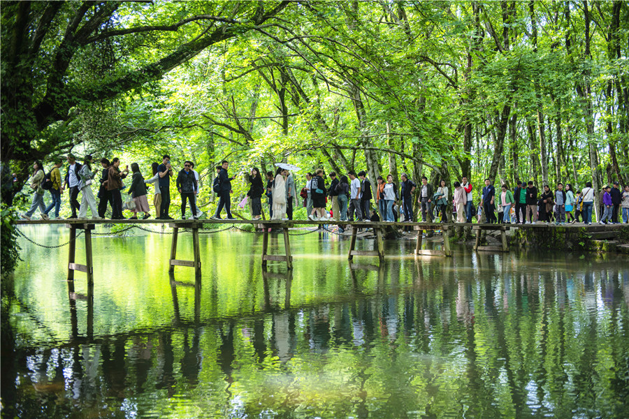 5月2日,黄山市徽州区西溪南湿地人流如潮,充满诗情画意的美景吸引了全国各地的游客。通讯员 刘伯顺 摄