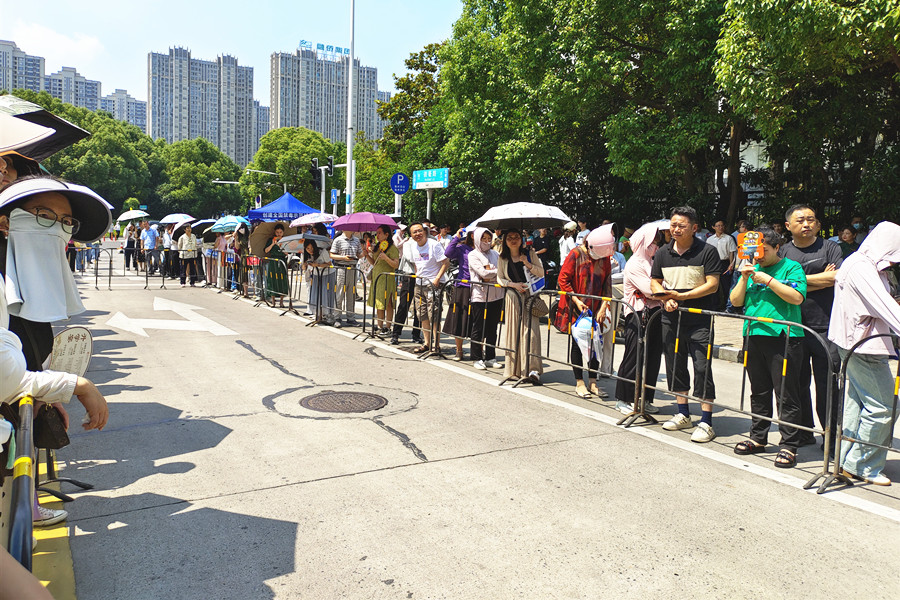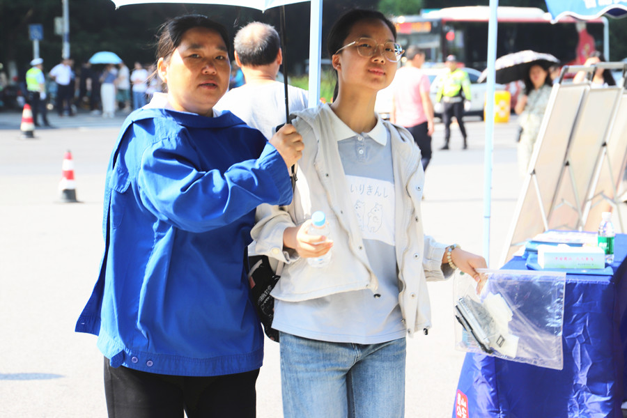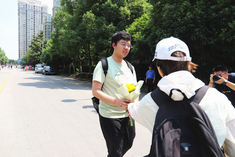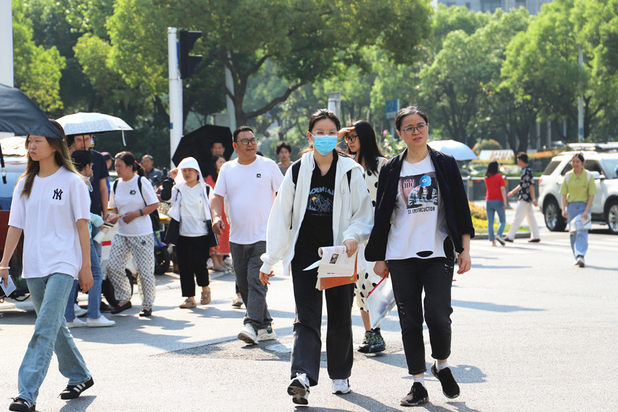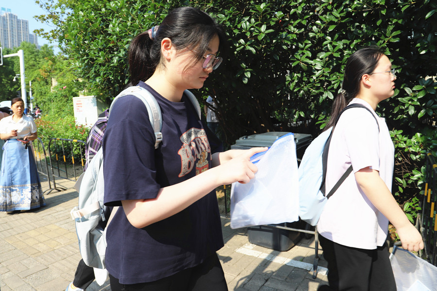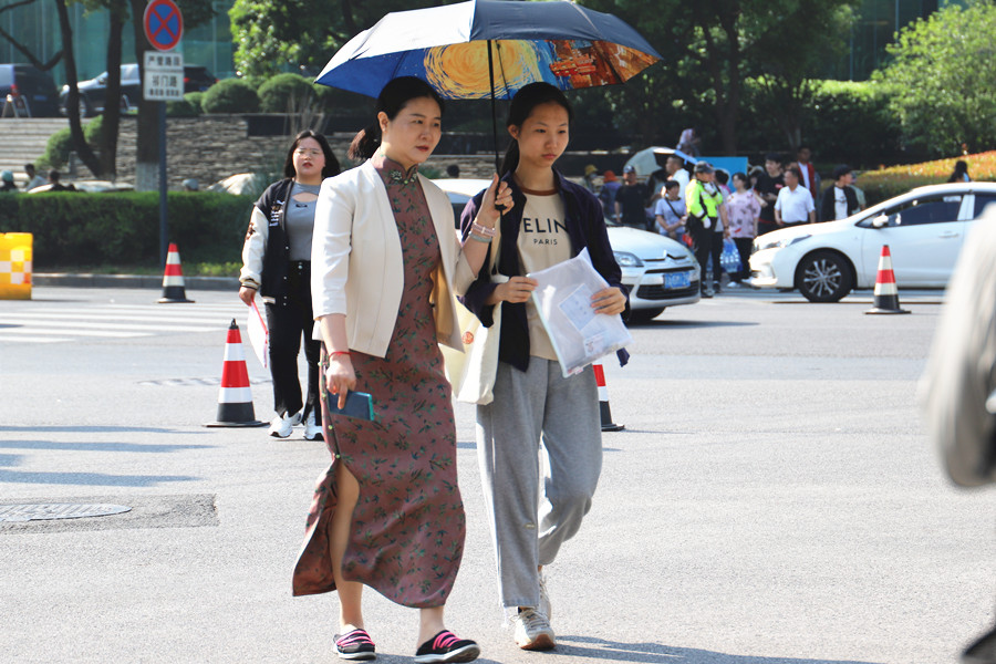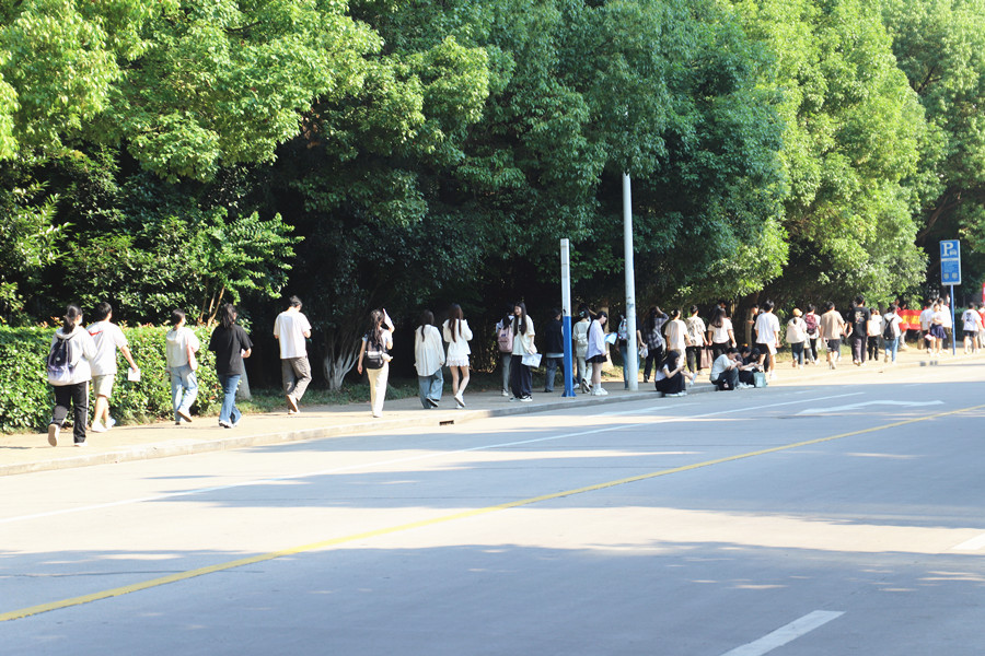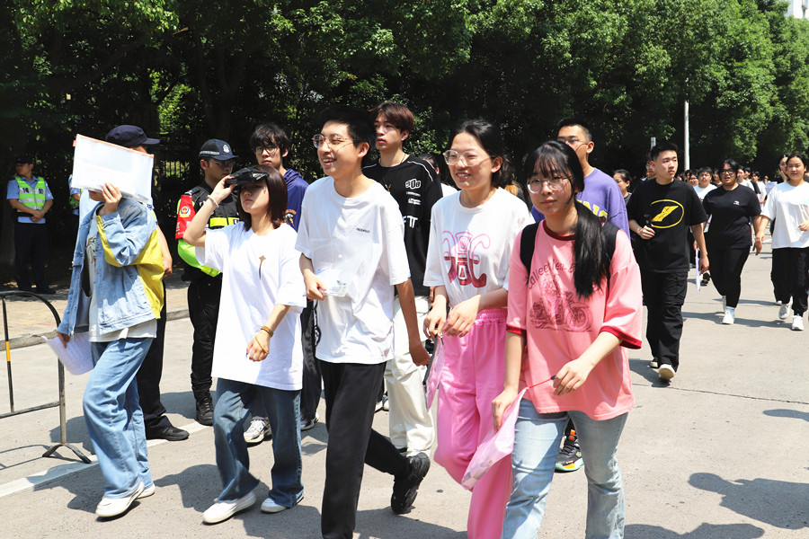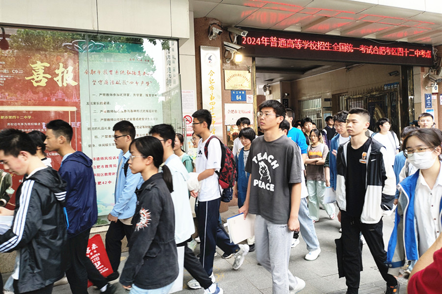 合肥四十二中考点,语文考试结束后,考生们陆续走出考场。