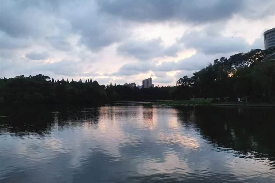 本网讯 (记者 王振华)近日,雨后的杏花公园,清风拂柳,荷香清远。又有云霞飞渡,水映长天,似油画一般。置身其间,如在画中穿行。