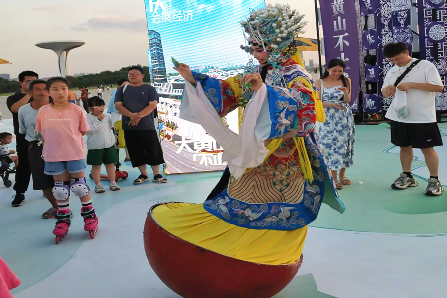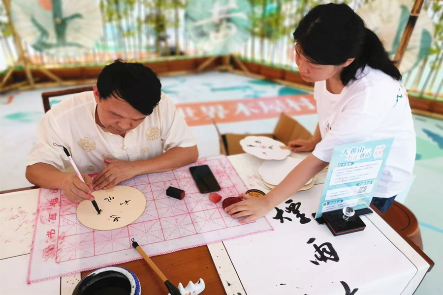活动现场以大黄山为核心,通过沉浸式文化活动,展示了大黄山独特的自然景观与深厚的文化底蕴,观众们也体验了徽州鱼灯、宣纸扇等不同的非遗项目,感受大黄山的风土人情。