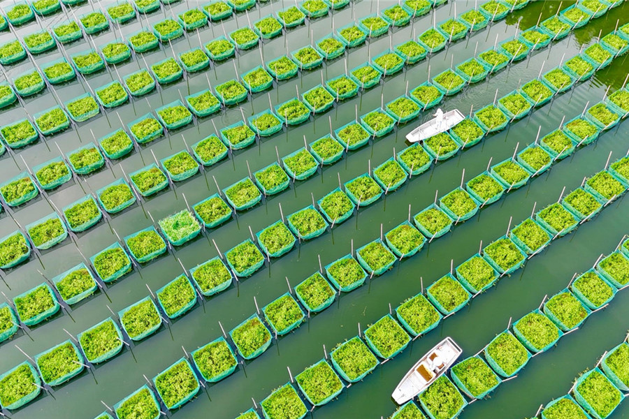 8月26日,在怀宁县石牌镇保湖村黄鳝养殖基地,村民打捞黄鳝,准备上市销售。保湖村黄鳝养殖面积960亩,年产值近亿元,有力带动了村级集体经济发展和群众增收。