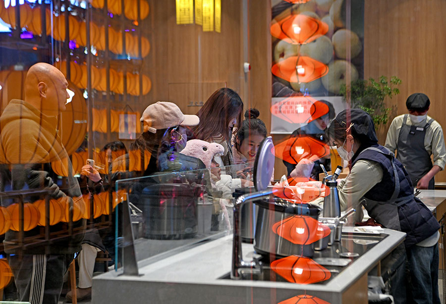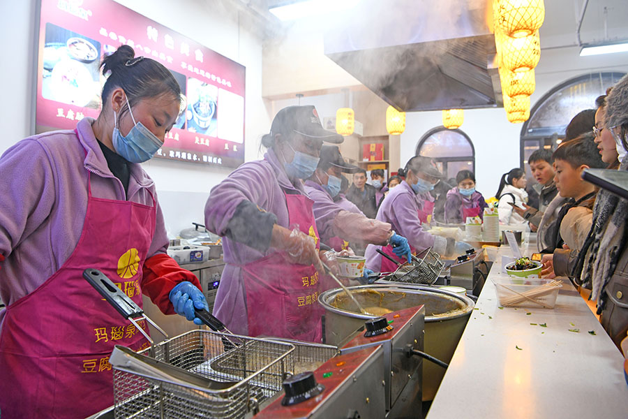 2024年12月29日,游客在安徽省淮南市春申里文旅街区夜游消费,品尝淮南豆腐美食,街区带动3000余人就业。