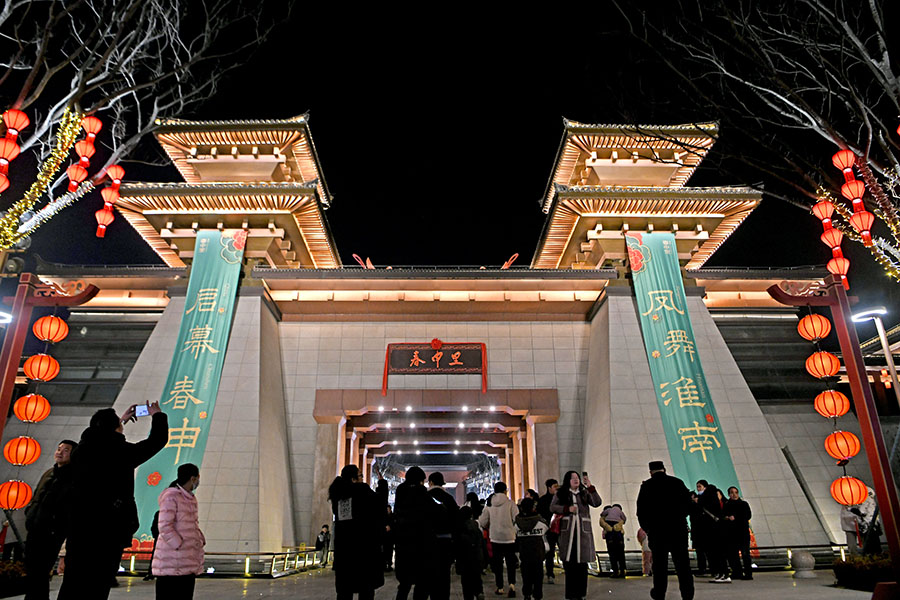 2024年12月29日,游客在安徽省淮南市春申里文旅街区夜游,感受楚风汉韵。12月28日,总建筑面积约7.8万平方米的安徽省淮南市春申里文旅街区正式开放,春申里文旅街区包括主题文化区、品质生活区、精致餐饮区、城市会客区、休闲娱乐区五大功能板块,文旅街区建成开放丰富了群众休闲文化生活,带动就业3000余人。(陈彬 文/图)