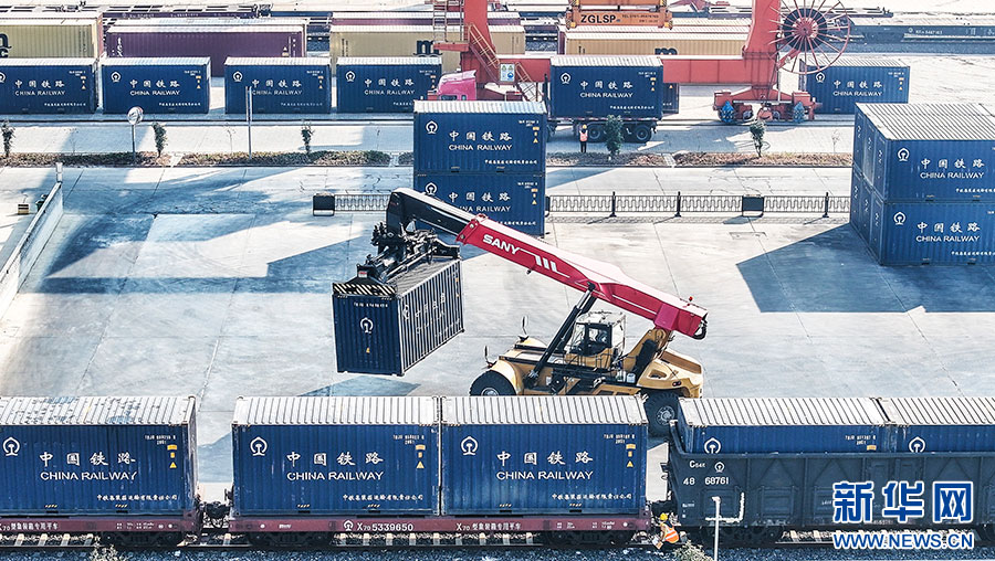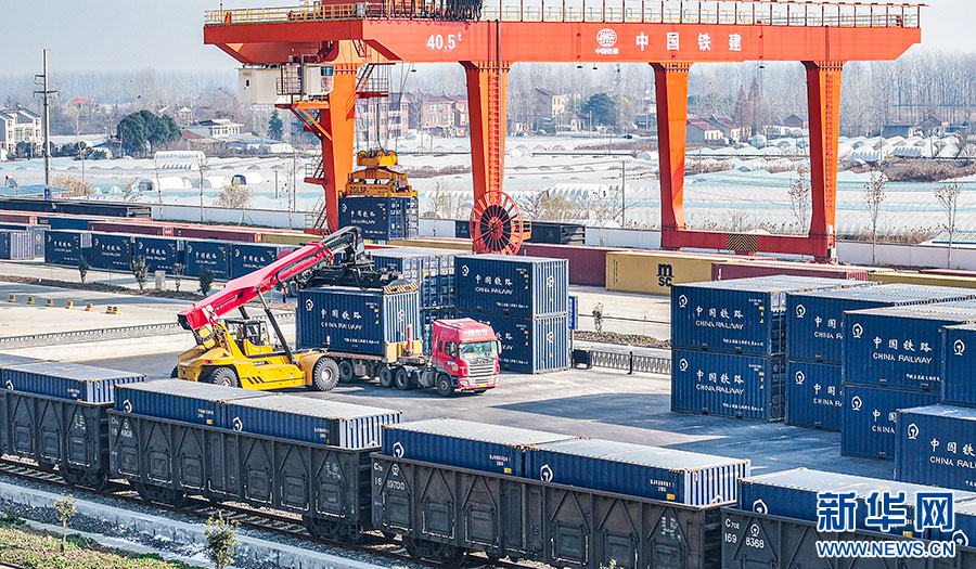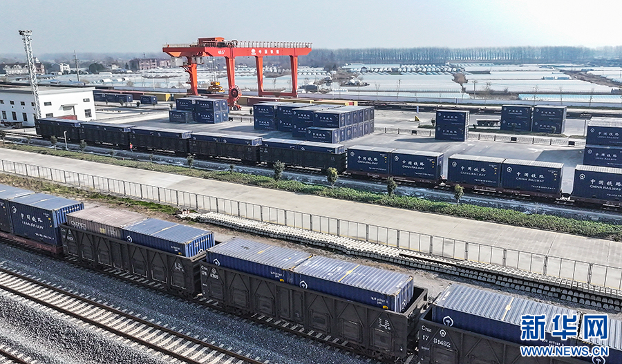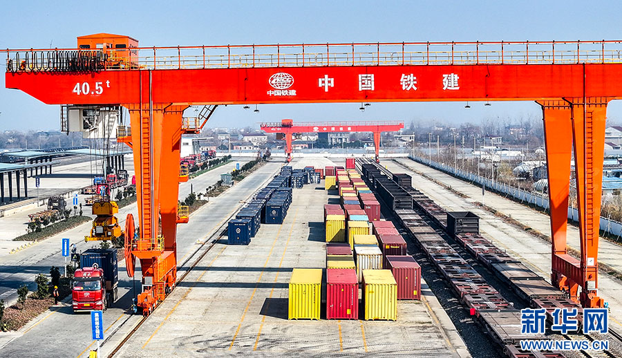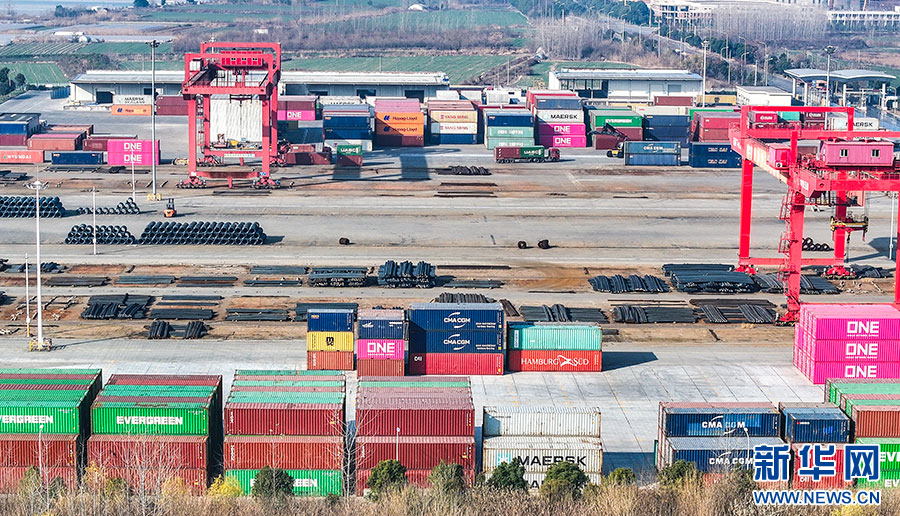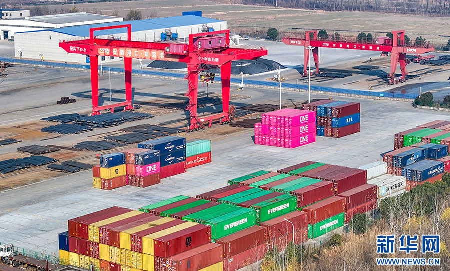 近年来,郑蒲港新区充分发挥其在长江经济带的区位优势,整合长江航运、公铁水多式联运等中转和运输功能,着力打造安徽江海联运枢纽中心,“区港联动”“铁水联运”成效初显。新华网发(王文生 摄)