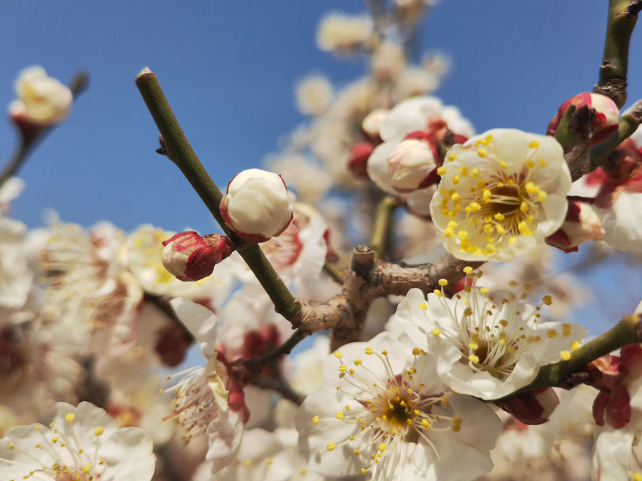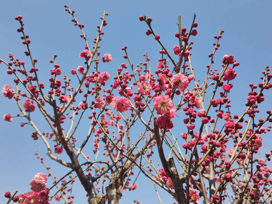 2月18日,天朗气清,阳光明媚。合肥园博园安徽园内的梅花次第绽放,春意渐浓。(