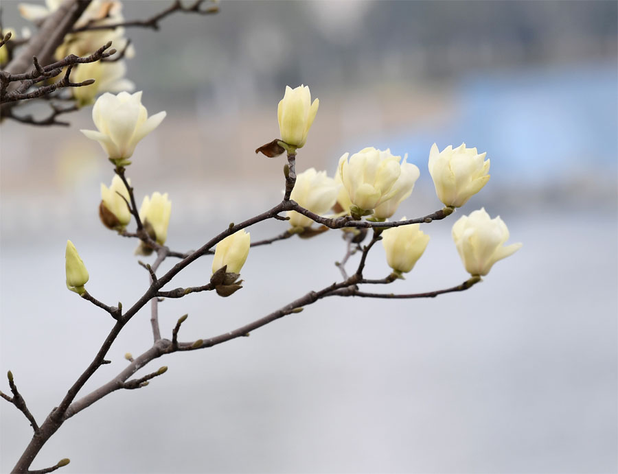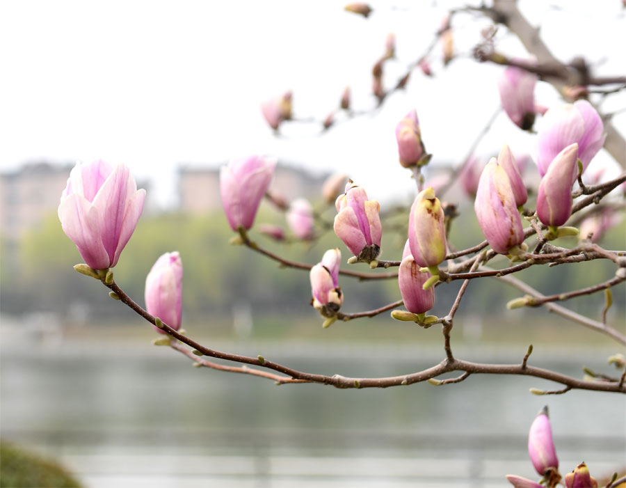 除了世纪新都小区,在巢湖市老码头公园、丁岗河公园等地,一棵棵白玉兰、紫玉兰已然绽放,花瓣从毛茸茸的花萼中钻出来,没有过多的修饰,慵懒优雅的绽放于枝头,美得让人动心,像一位清尘脱俗、风姿优雅的仙子。在巢湖,不少地方也种植了玉兰花,白色、紫色、红色的花朵,街头巷尾、公园、小区、道路两侧随处可见。