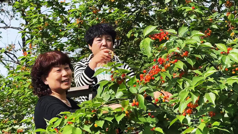 近日,安徽省太和县沙颍河两岸的樱桃陆续成熟,一颗颗红润饱满的果实缀满枝头,吸引着八方游客前来采摘尝鲜。(陶俊)