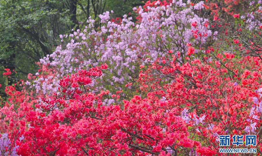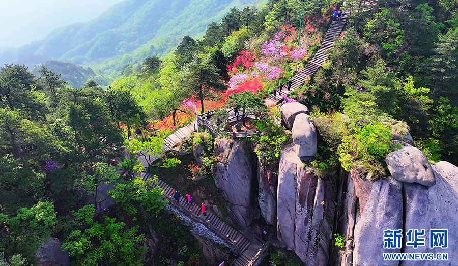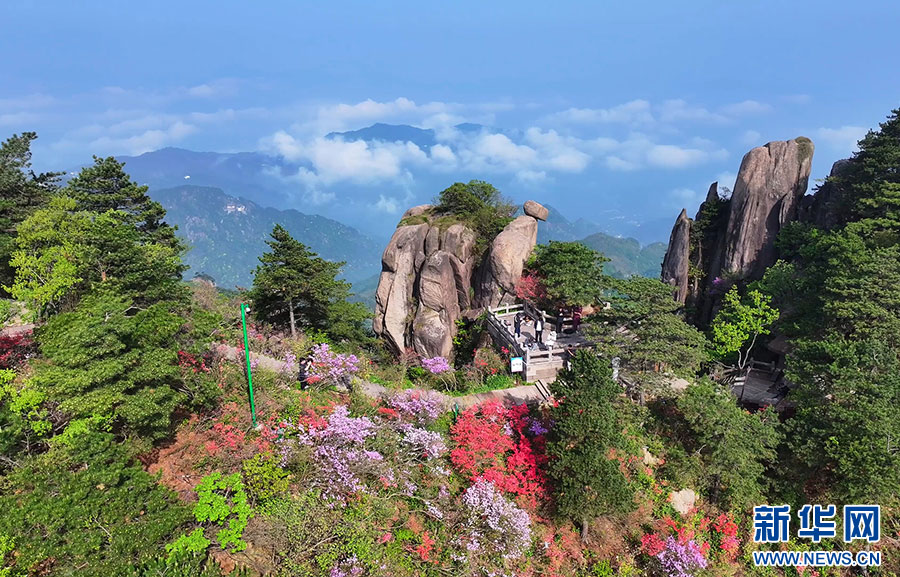 4月下旬起,安徽九华山风景区花台景区迎来了一年中最绚丽的时节。景区内成片的高山杜鹃竞相绽放,形成绵延千米的“天街花市”,吸引不少游客前来观赏。据了解,花台高山杜鹃的花期一般持续1个半月到2个月,“五一”假期前后达到最佳观赏效果。(陈英杰 韩磊 摄)