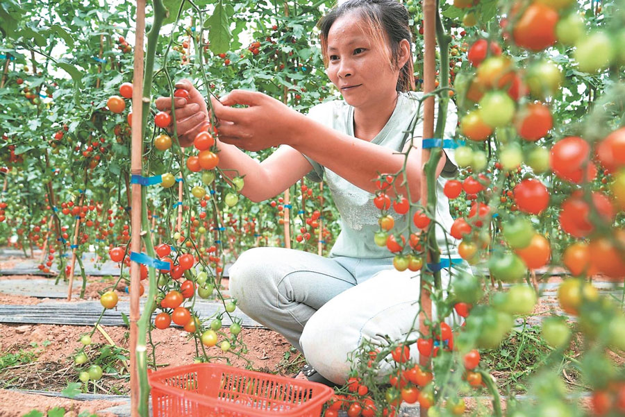 5月6日,在铜陵市枞阳县雨坛镇新民村,农户在采摘圣女果。近年来,雨坛镇鼓励各村结合自身资源优势,发展特色农业,促进农业提质增效、农民增收致富。通讯员 王章志 汪翔 摄