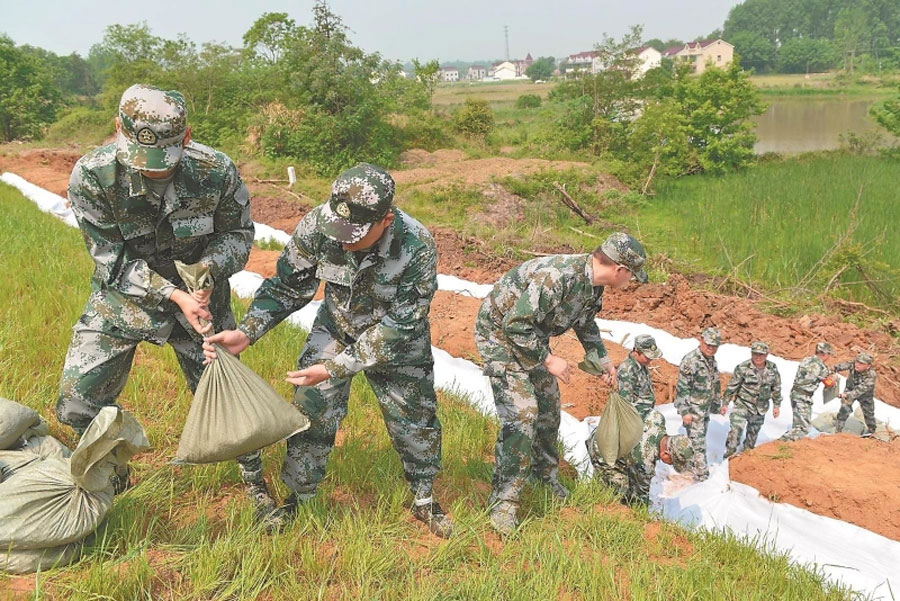 近日,安徽省淠史杭灌区防汛机动抢险队员正在六安市舒城县阙店乡进行防汛抢险演练,全面检验救援队伍抗洪抢险的实战水平。