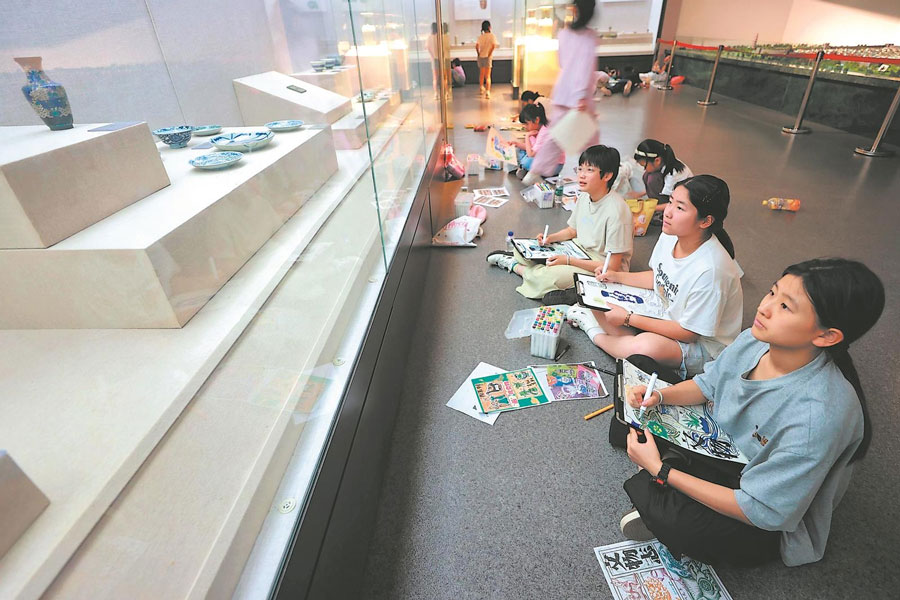 5月17日,当涂县博物馆,小朋友在参加该馆举办的“我在博物馆画文物”活动,从文物了解家乡的历史和文化。通讯员 汪宗本 赵晴 摄