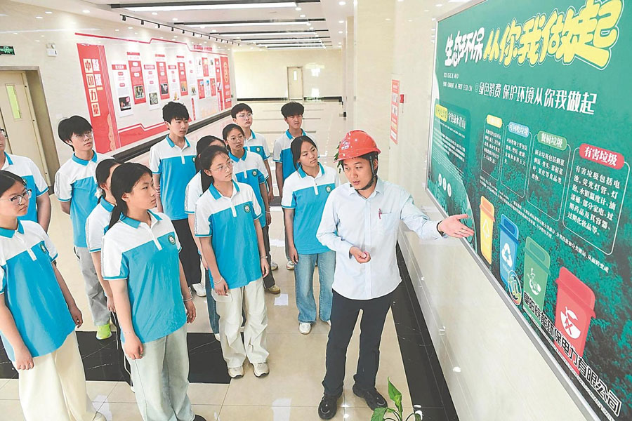 6月6日,阜阳市插花中学高一学生在阜阳皖能环保电力有限公司内参观,近距离感受垃圾“变废为宝”过程,感受绿色环保科技魅力。特约摄影 王彪 通讯员 张金亭 摄