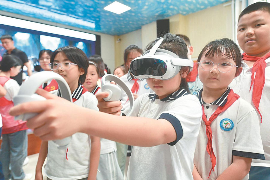 6月10日,在合肥市十里庙小学,小学生在体验XR设备。当天,“AI魔法世界”科普知识进校园活动走进该校,学生通过XR设备等互动体验,沉浸式感受科技创新的独特魅力。通讯员 葛宜年 摄
