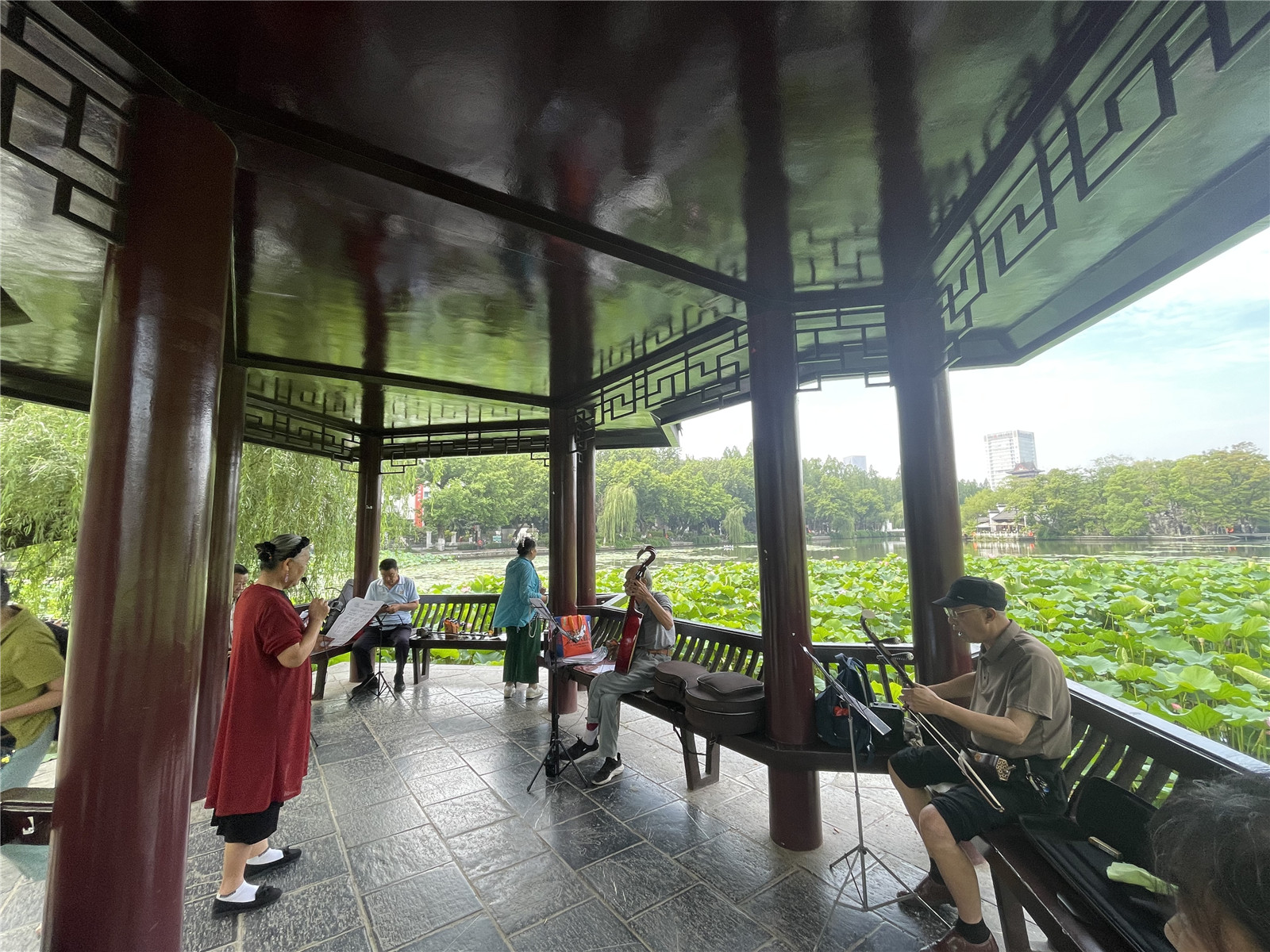本网讯(记者 陆迪)时值盛夏,合肥包公园的荷花进入盛花期,吸引众多市民和游客前来观赏。水面上,大片荷叶层层叠叠,荷花娇艳绽放,或红或白,与周边建筑相互映衬,构成了一幅绝美的夏日画卷。