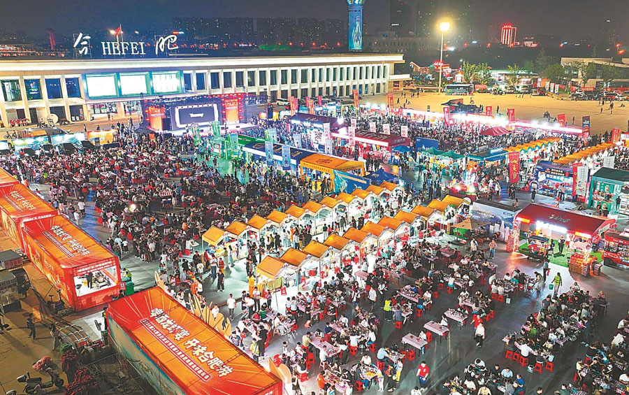 6月25日,2025第24届合肥龙虾节在合肥骆岗公园开幕。市民在品尝龙虾,参与趣味赛事、潮流音乐会等活动中,感受夏日夜经济的独特魅力。记者 程兆 摄