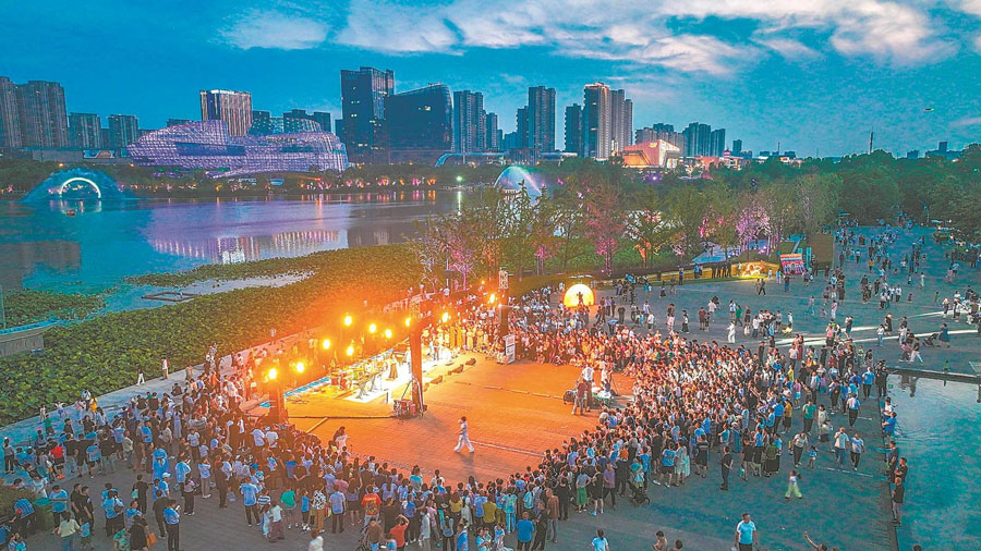 6月22日傍晚,阜阳市双清湾公园人气爆棚,“乐享清河”便民集市与“一城暖阳”城市音乐会同步启幕,为市民打造夏日休闲新体验。通讯员 庞诚 摄
