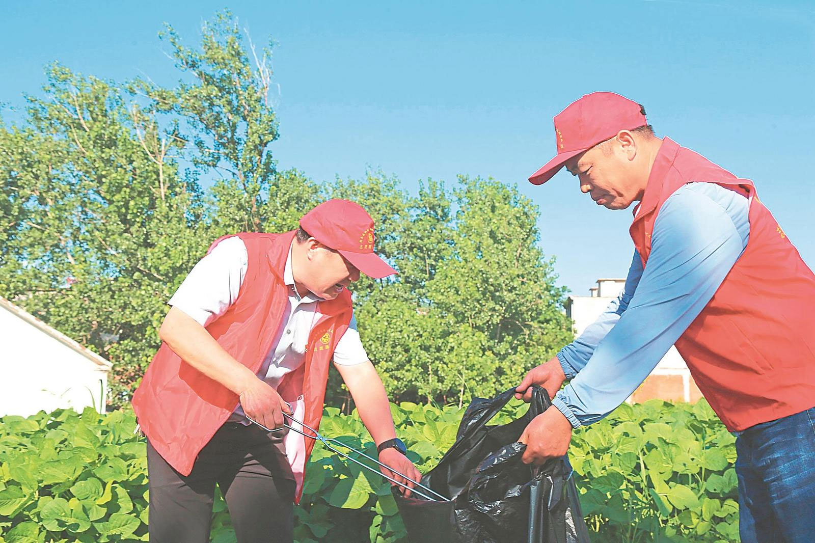 6月30日,颍上县机电排灌所党支部组织党员在新长林站堤坝及外河滩头开展捡拾垃圾志愿服务活动,共护一河碧水。本报通讯员 王林洪 摄