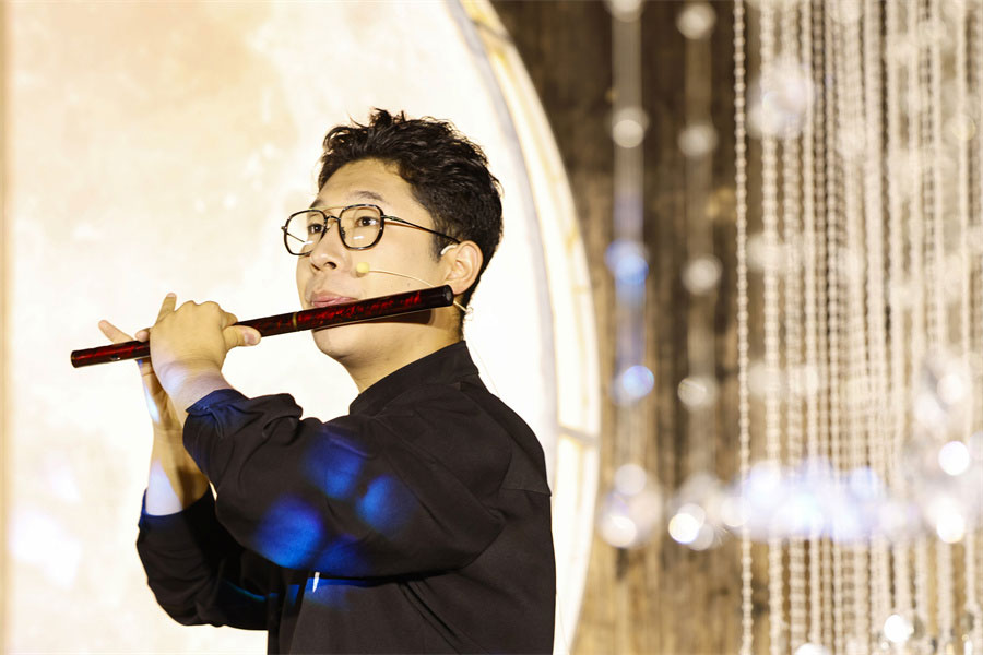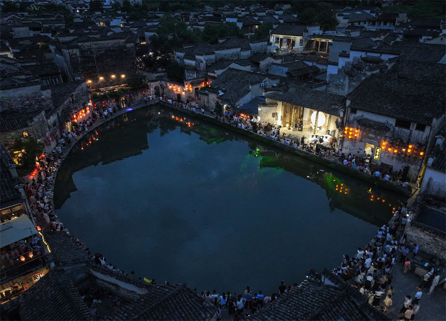 当日晚,在安徽省黄山市黟县宏村,“月沼乐夜”公益音乐会浪漫上演。来自中国音乐学院“美育浸润徽韵扬 非遗传承青年行”实践团的22名师生,通过声乐舞蹈、器乐演奏的方式,演绎了《春江花月夜》等经典曲目。动人旋律在粉墙黛瓦间流转,于千年月沼水面轻漾,在夏夜古村奏响一曲“星空乐章”,吸引众多游客沉醉其中,助力古村夏日夜经济。新华网发(施亚磊 摄)