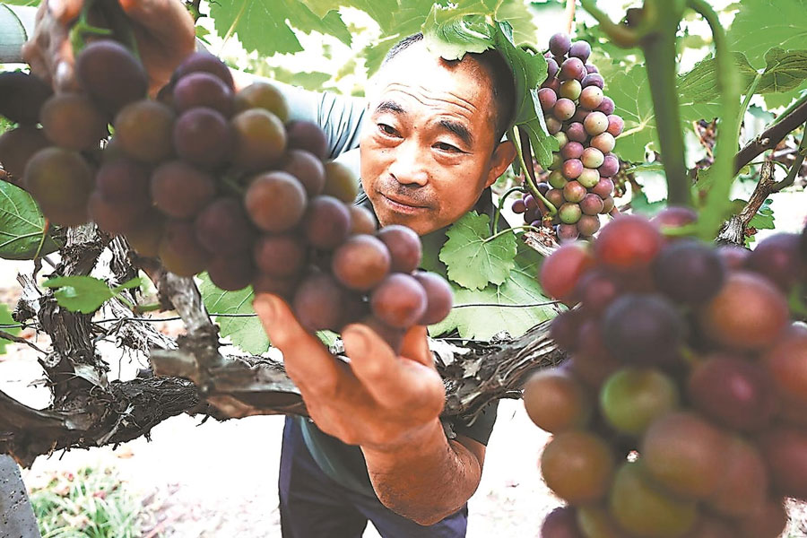 7月12日,寿县炎刘镇石埠村,村民们正在一家葡萄种植合作社内采摘葡萄。目前,葡萄迎来上市“黄金期”,将极大丰富市民们的“果盘子”。通讯员 万前进 摄