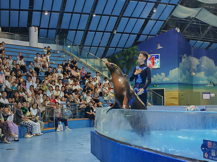 8月3日,中伏时节,暑气逼人。合肥海洋馆里清爽宜人、游人如织、热闹非凡。大人和孩子们观赏着丰富多样的海洋生物,体验着海洋世界带来的美好,流连忘返。美人鱼表演、海狮表演、海豚表演等吸引了众多观众,现场不时传出掌声和欢笑声。(贺鹏云 摄)