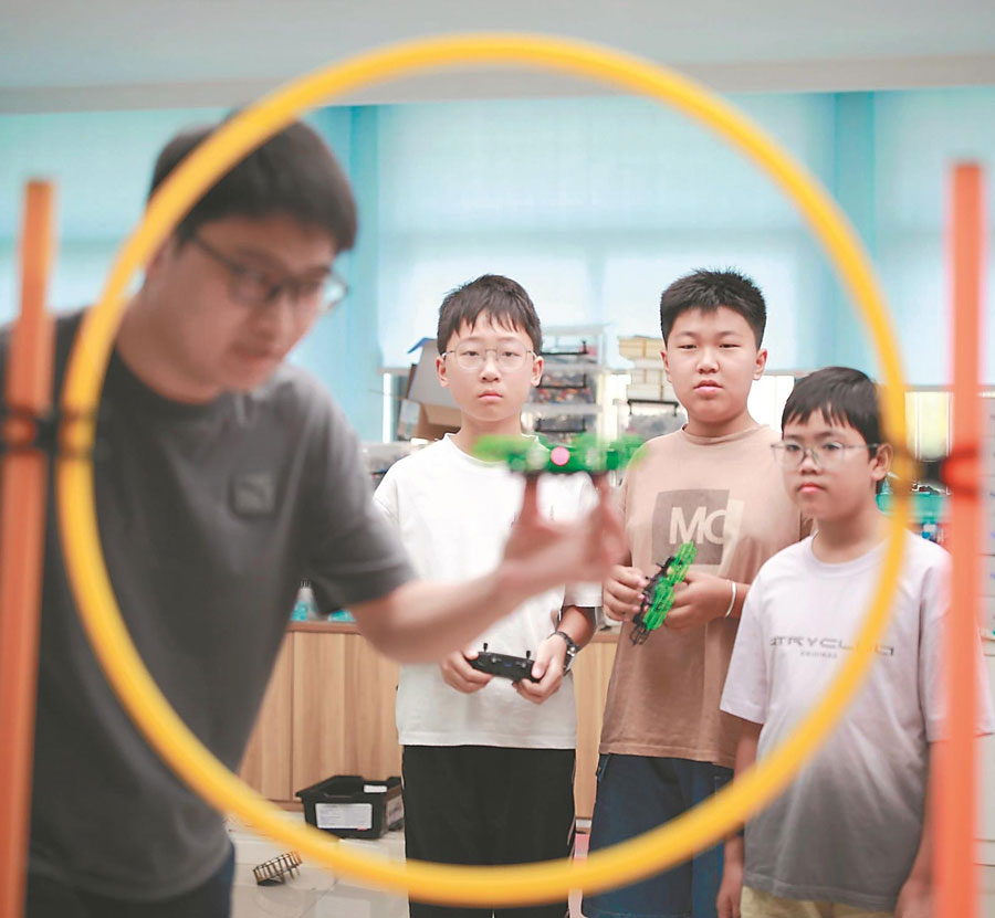 9月14日,芜湖市繁昌区青少年活动中心科技课堂,老师给小朋友们讲解无人机操控知识并进行飞行训练。本报通讯员 程健 摄