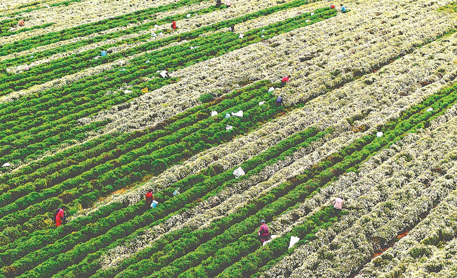 10月9日,亳州市谯城区十八里镇蒋李村,农民在菊花种植基地采收菊花。本报通讯员 刘勤利 摄