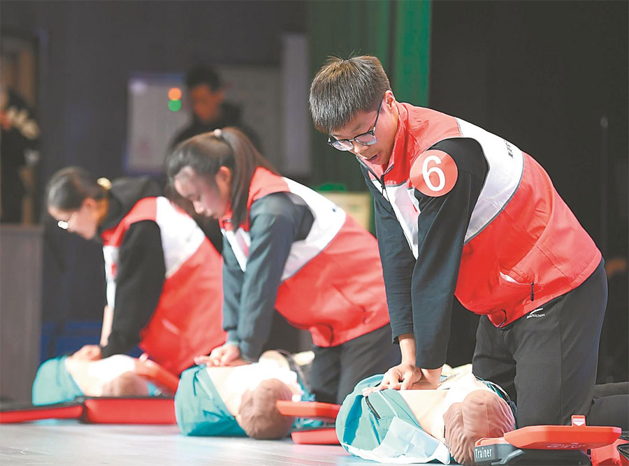 11月19日,巢湖市红十字会联合巢湖学院,举办心肺复苏技能大赛。来自巢湖学院的28名学生同台竞技,共同提升校园应急救护能力。通讯员 马丰成 摄