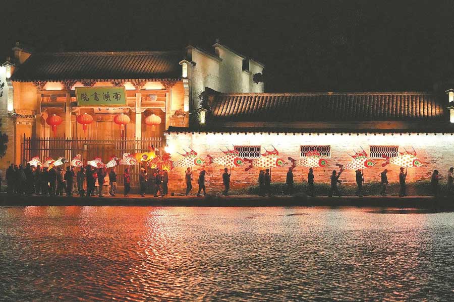2025年12月31日,一场鱼灯巡游活动在黄山市黟县宏村古村落精彩上演。通讯员 许家栋 摄