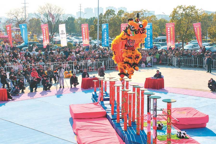 1月2日,由国家体育总局社会体育指导中心指导的2026年中国龙狮公开赛(淮南寿县站)开幕。本次公开赛汇集了全国南狮、北狮、舞龙项目共15支队伍。记者 李博 摄