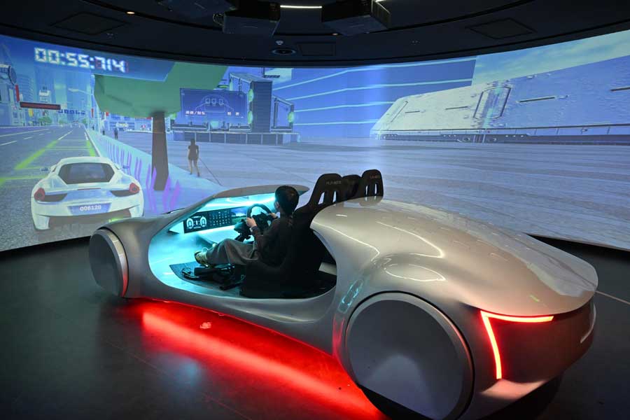 2月19日,游客在安徽省科技馆体验科技展品。自从巨型LED球幕“科技之眼”亮相中央广播电视总台马年春晚后,众多游客前来科技馆打卡,感受科技魅力。本报记者 张大岗 摄