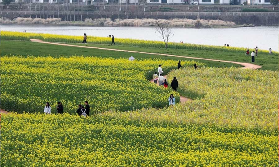 3月9日,屯溪区横江郊野公园花开似海,吸引游人流连其间。经过多年的生态建设,昔日荒芜滩涂已经蝶变为新安江畔的美丽花海,成为市民游客休闲的好去处。樊成柱/摄