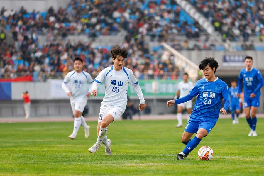 3月14日下午3时,2026年合肥城市足球联赛在合肥体育中心正式拉开战幕。坐镇主场的蜀山区队以1比0完胜高新区队,斩获开门红。图为比赛现场。