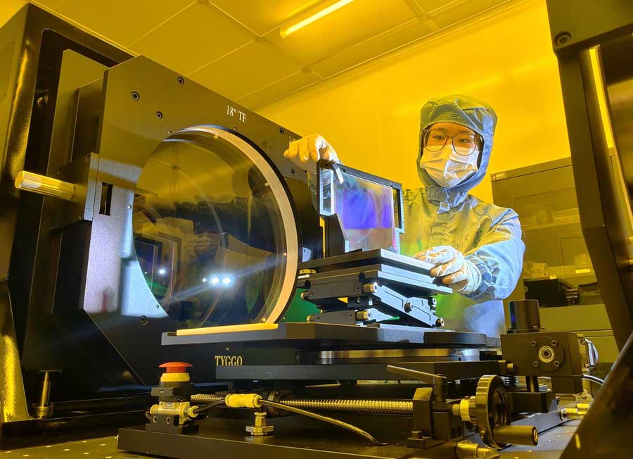 3月13日,位于肥东县长临河科创小镇的安徽中科光栅科技有限公司里,员工对衍射光栅产品进行测试。近年来,肥东县持续强化技术创新与成果转化,为新质生产力发展注入强劲动能。本报通讯员 许庆勇 摄