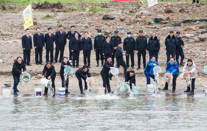3月1日下午,大观区检察院邀请长江航运公安局安庆分局和区法院、农业农村局、水利局等部门共同开展了一场增殖放流活动,将4万余尾草鱼、鳙鱼、鲢鱼鱼苗放流至长江。